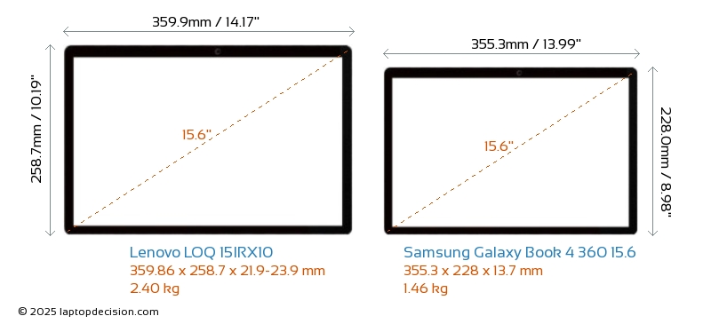 Thunderbolt Galaxy Book 4 360 15.6 ist mit einem Thunderbolt 4-Port ausgestattet. LOQ 15IRX10 hat keinen Thunderbolt-Port.