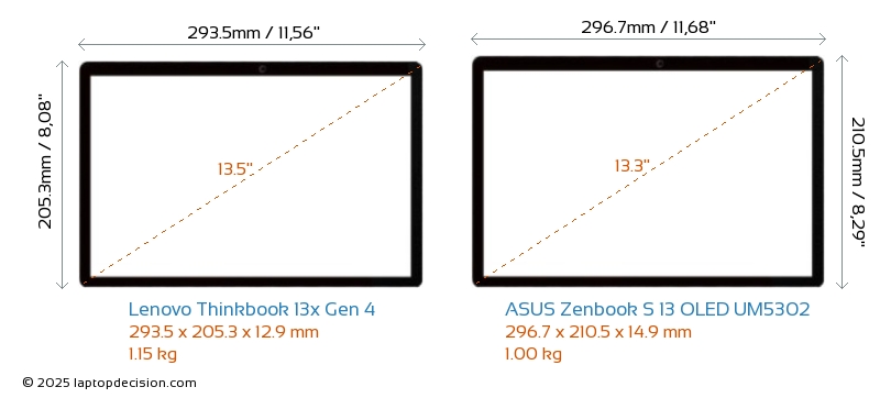 HDMINeither Thinkbook 13x Gen 4 nor Zenbook S 13 OLED UM5302 has an HDMI port for connecting to external monitors. Weder Thinkbook 13x Gen 4 noch Zenbook S 13 OLED UM5302 haben einen HDMI-Port für den Anschluss an externe Monitore.