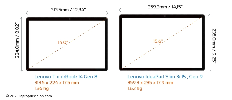 Thunderbolt ThinkBook 14 Gen 8 ist mit einem Thunderbolt 4-Port ausgestattet. IdeaPad Slim 3i 15 , Gen 9 hat keinen Thunderbolt-Port.