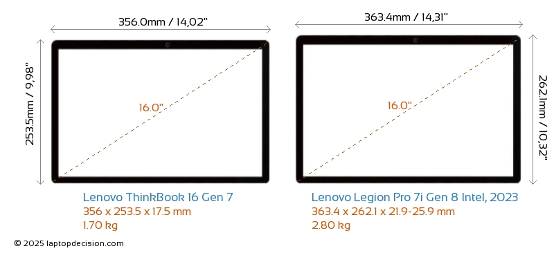 HDMIBeide, ThinkBook 16 Gen 7 und Legion Pro 7i Gen 8 Intel, 2023, verfügen über einen HDMI-Port (1x HDMI 2.1) zum Anschluss an externe Monitore.