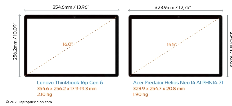 HDMIBeide, Thinkbook 16p Gen 6 und Predator Helios Neo 14 AI PHN14-71, verfügen über einen HDMI-Port (1x HDMI 2.1) zum Anschluss an externe Monitore.
