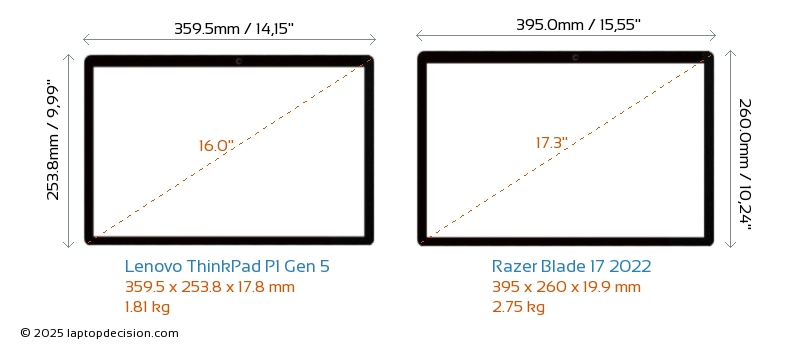 ThunderboltBeide, ThinkPad P1 Gen 5 und Blade 17 2022, sind mit Thunderbolt 4-Ports ausgestattet.