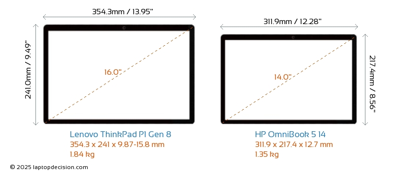 HDMI ThinkPad P1 Gen 8 verfügt über einen HDMI-Port (1x HDMI 2.1) zum Anschluss an externe Monitore. OmniBook 5 14 hat keinen HDMI-Port.
