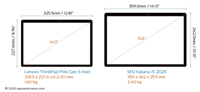 HDMIBeide, ThinkPad P14s Gen 6 Intel und Katana 15 2025, verfügen über einen HDMI-Port (1x HDMI 2.1) zum Anschluss an externe Monitore.