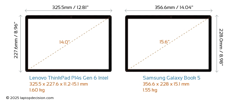 HDMIBeide, ThinkPad P14s Gen 6 Intel und Galaxy Book 5, verfügen über einen HDMI-Port. ThinkPad P14s Gen 6 Intel bietet 1x HDMI 2.1, während Galaxy Book 5 1x HDMI 1.4 bietet.