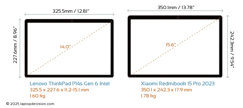 Thunderbolt ThinkPad P14s Gen 6 Intel ist mit einem Thunderbolt 4-Port ausgestattet. Redmibook 15 Pro 2023 hat keinen Thunderbolt-Port.