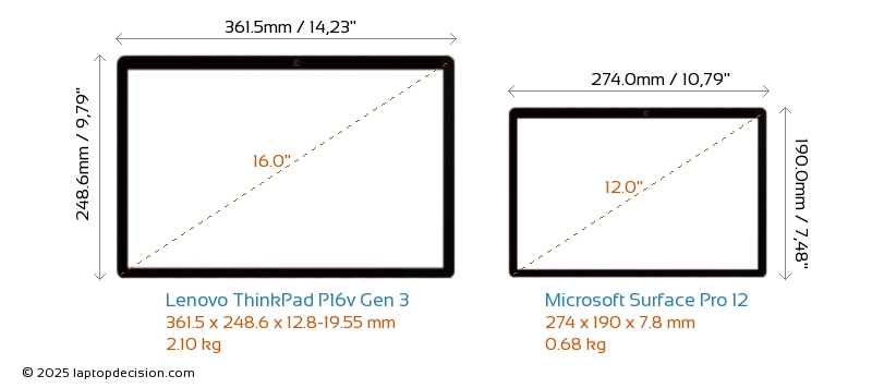 Thunderbolt ThinkPad P16v Gen 3 ist mit einem Thunderbolt 4-Port ausgestattet. Surface Pro 12 hat keinen Thunderbolt-Port.