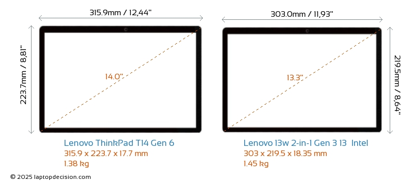 HDMIBeide, ThinkPad T14 Gen 6 und 13w 2-in-1 Gen 3 13 Intel, verfügen über einen HDMI-Port (1x HDMI 2.1) zum Anschluss an externe Monitore.