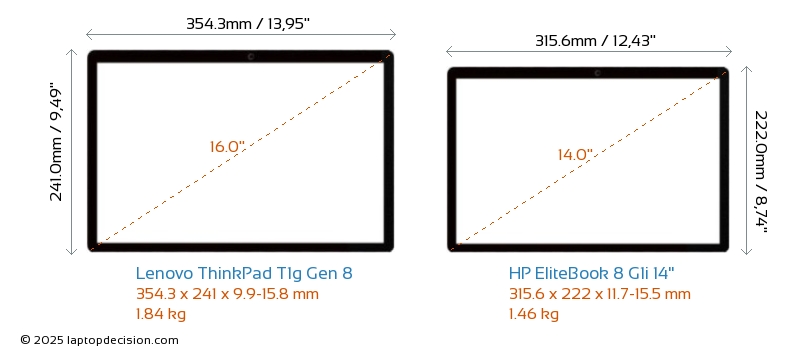 ThunderboltBeide, ThinkPad T1g Gen 8 und EliteBook 8 G1i 14", verfügen über Thunderbolt-Ports. ThinkPad T1g Gen 8 hat Thunderbolt 5, während EliteBook 8 G1i 14" Thunderbolt 4 hat.