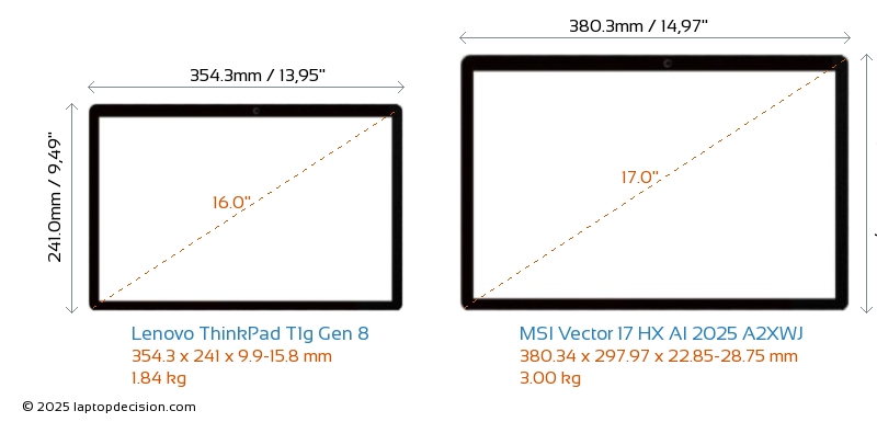 ThunderboltBeide, ThinkPad T1g Gen 8 und Vector 17 HX AI 2025 A2XWJ, sind mit Thunderbolt 5-Ports ausgestattet.
