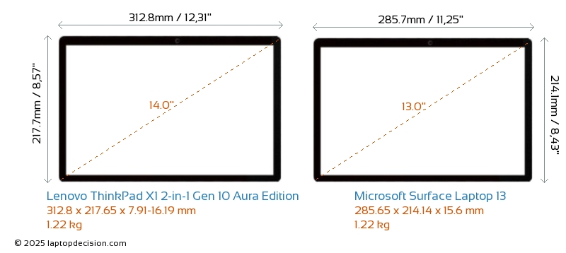 HDMI ThinkPad X1 2-in-1 Gen 10 Aura Edition verfügt über einen HDMI-Port (1x HDMI 2.1) zum Anschluss an externe Monitore. Surface Laptop 13 hat keinen HDMI-Port.