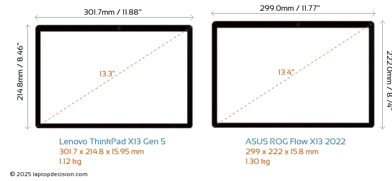 Thunderbolt ThinkPad X13 Gen 5 ist mit einem Thunderbolt 4-Port ausgestattet. ROG Flow X13 2022 hat keinen Thunderbolt-Port.