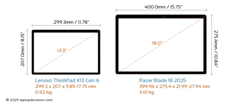 HDMIBeide, ThinkPad X13 Gen 6 und Blade 18 2025, verfügen über einen HDMI-Port (1x HDMI 2.1) zum Anschluss an externe Monitore.