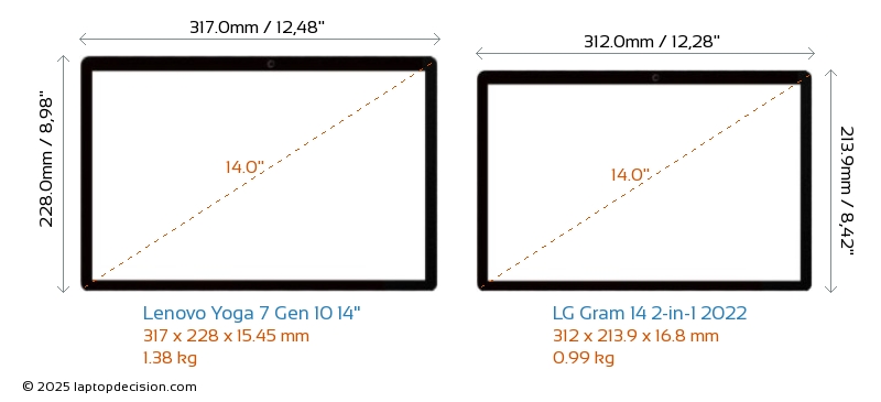 Wifi Yoga 7 Gen 10 14" bietet einen fortschrittlicheren Wi-Fi-Standard v7, was schnellere und zuverlässigere drahtlose Verbindungen im Vergleich zu Gram 14 2-in-1 2022 (v6E) ermöglicht.