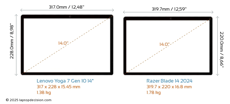 HDMIBeide, Yoga 7 Gen 10 14" und Blade 14 2024, verfügen über einen HDMI-Port (1x HDMI 2.1) zum Anschluss an externe Monitore.
