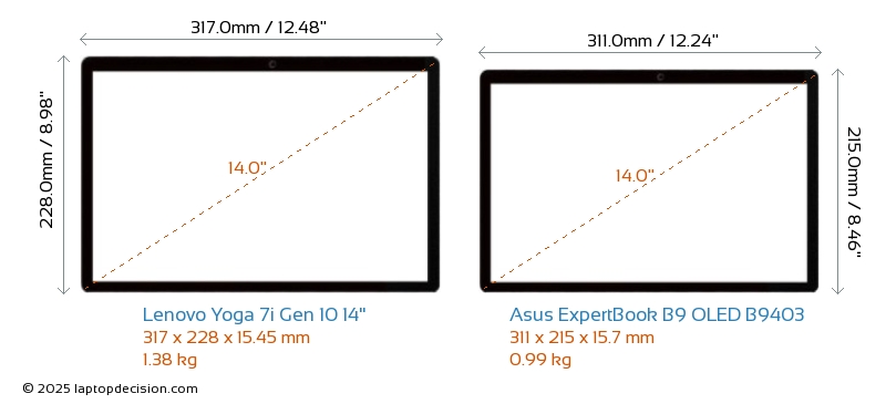 ThunderboltBeide, Yoga 7i Gen 10 14" und ExpertBook B9 OLED B9403, sind mit Thunderbolt 4-Ports ausgestattet.