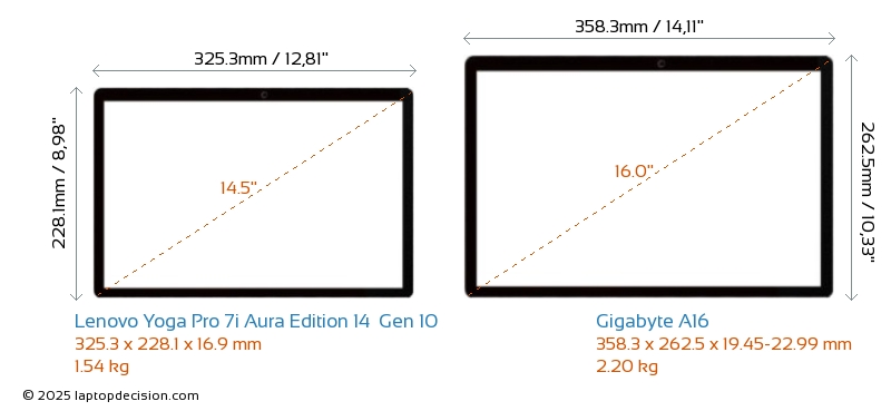 Thunderbolt Yoga Pro 7i Aura Edition 14 Gen 10 ist mit einem Thunderbolt 4-Port ausgestattet. A16 hat keinen Thunderbolt-Port.