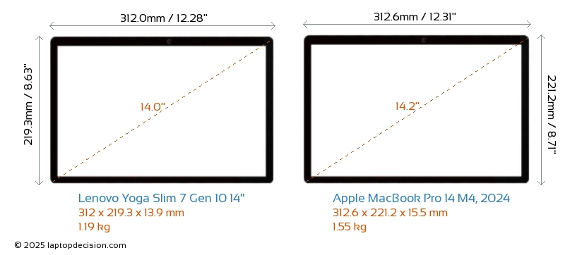 ThunderboltBeide, Yoga Slim 7 Gen 10 14" und MacBook Pro 14 M4, 2024, sind mit Thunderbolt 4-Ports ausgestattet.
