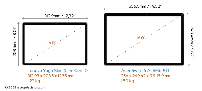 ThunderboltBeide, Yoga Slim 9i 14 Gen 10 und Swift 16 AI SF16-51T, sind mit Thunderbolt 4-Ports ausgestattet.