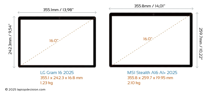 ThunderboltBeide, Gram 16 2025 und Stealth A16 AI+ 2025, sind mit Thunderbolt 4-Ports ausgestattet.