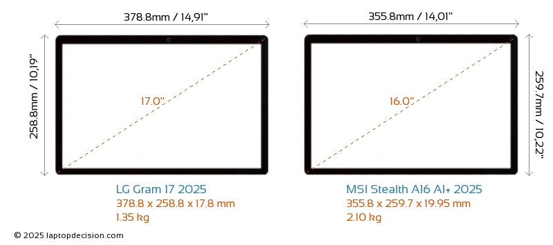 HDMIBeide, Gram 17 2025 und Stealth A16 AI+ 2025, verfügen über einen HDMI-Port (1x HDMI 2.1) zum Anschluss an externe Monitore.