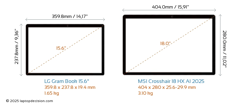 HDMIBeide, Gram Book 15.6" und Crosshair 18 HX AI 2025, verfügen über einen HDMI-Port. Gram Book 15.6" bietet 1x HDMI 1.4, während Crosshair 18 HX AI 2025 1x HDMI 2.1 bietet.