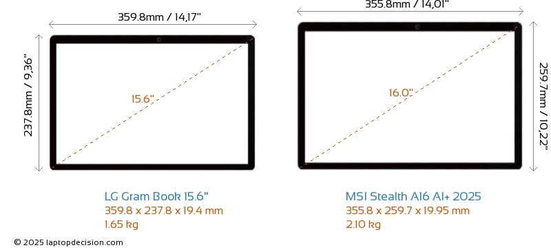 Wifi Stealth A16 AI+ 2025 bietet einen fortschrittlicheren Wi-Fi-Standard v7, was schnellere und zuverlässigere drahtlose Verbindungen im Vergleich zu Gram Book 15.6" (v6) ermöglicht.