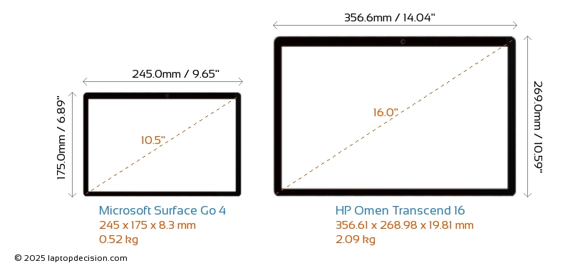USB Omen Transcend 16 ist mit 1x USB 3.2 USB-A-Ports ausgestattet. Surface Go 4 hat keine USB-A-Ports.Beide Surface Go 4 und Omen Transcend 16 haben USB-Type-C-Ports. Surface Go 4 hat 1x USB 3.1 USB Type-C-Ports, während Omen Transcend 16 2x USB 4.0 USB Type-C-Ports hat.