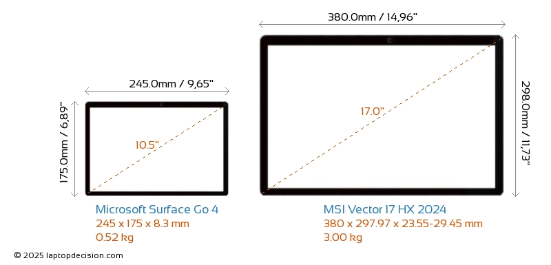 AudioanschlussBeide, Surface Go 4 und Vector 17 HX 2024, sind mit einem 3,5-mm-Audioanschluss ausgestattet, der eine nahtlose Verbindung zu Kopfhörern und Lautsprechern ermöglicht.