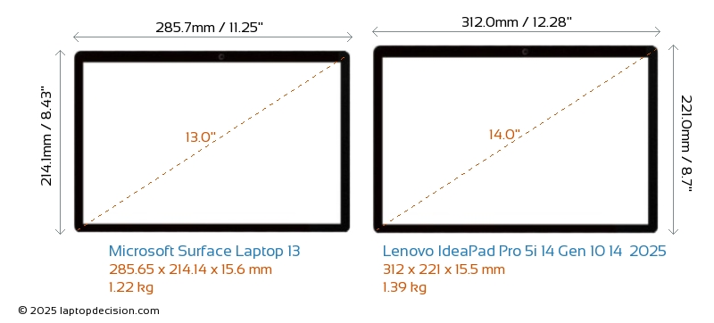 AudioanschlussBeide, Surface Laptop 13 und IdeaPad Pro 5i 14 Gen 10 14 2025, sind mit einem 3,5-mm-Audioanschluss ausgestattet, der eine nahtlose Verbindung zu Kopfhörern und Lautsprechern ermöglicht.