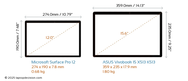 HDMIVivobook 15 X513 K513 verfügt über einen HDMI-Port (1x HDMI 1.4) zum Anschluss an externe Monitore. Surface Pro 12 hat keinen HDMI-Port.