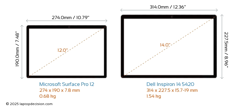 HDMIInspiron 14 5420 verfügt über einen HDMI-Port (1x HDMI 1.4) zum Anschluss an externe Monitore. Surface Pro 12 hat keinen HDMI-Port.
