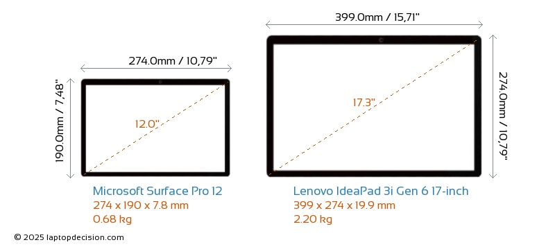 HDMIIdeaPad 3i Gen 6 17-inch verfügt über einen HDMI-Port (1x HDMI 1.4) zum Anschluss an externe Monitore. Surface Pro 12 hat keinen HDMI-Port.