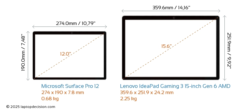 HDMIIdeaPad Gaming 3 15-inch Gen 6 AMD verfügt über einen HDMI-Port (1x HDMI 2.0) zum Anschluss an externe Monitore. Surface Pro 12 hat keinen HDMI-Port.
