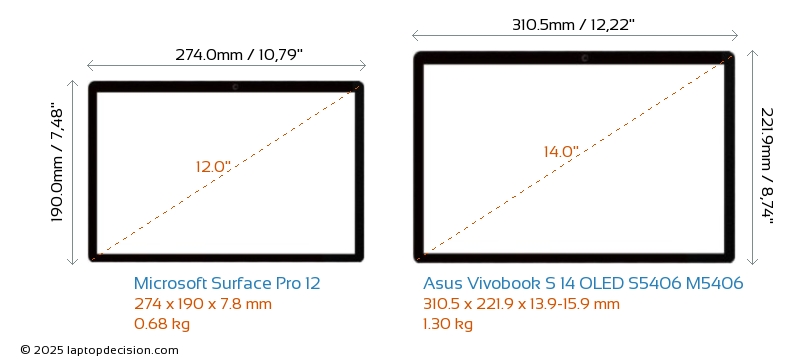 USB Vivobook S 14 OLED S5406 M5406 ist mit 2x USB 3.2 USB-A-Ports ausgestattet. Surface Pro 12 hat keine USB-A-Ports.Beide Surface Pro 12 und Vivobook S 14 OLED S5406 M5406 verfügen über 2x USB 4.0 USB-Type-C-Ports.