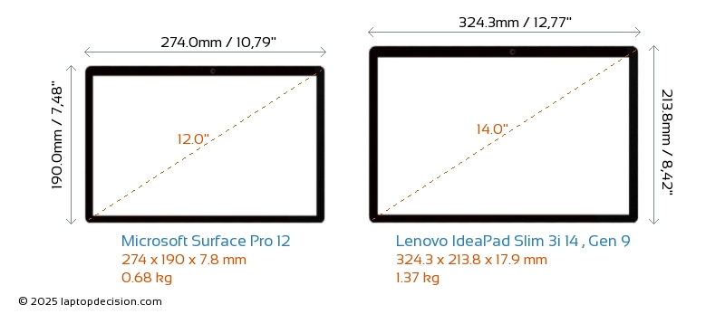 HDMI IdeaPad Slim 3i 14 , Gen 9 verfügt über einen HDMI-Port (1x HDMI 1.4) zum Anschluss an externe Monitore. Surface Pro 12 hat keinen HDMI-Port.