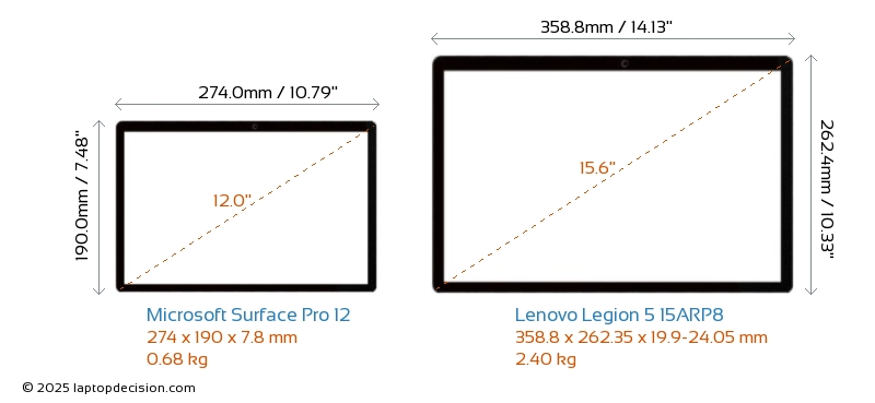 HDMI Legion 5 15ARP8 verfügt über einen HDMI-Port (1x HDMI 2.1) zum Anschluss an externe Monitore. Surface Pro 12 hat keinen HDMI-Port.