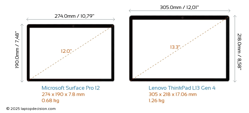 HDMI ThinkPad L13 Gen 4 verfügt über einen HDMI-Port (1x HDMI 2.0) zum Anschluss an externe Monitore. Surface Pro 12 hat keinen HDMI-Port.