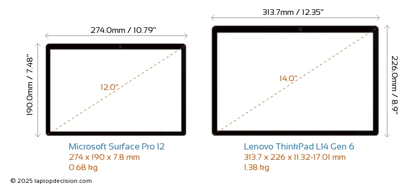 HDMI ThinkPad L14 Gen 6 verfügt über einen HDMI-Port (1x HDMI 2.1) zum Anschluss an externe Monitore. Surface Pro 12 hat keinen HDMI-Port.