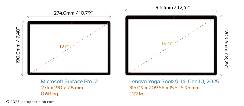 HDMINeither Surface Pro 12 nor Yoga Book 9i 14 Gen 10, 2025 has an HDMI port for connecting to external monitors. Weder Surface Pro 12 noch Yoga Book 9i 14 Gen 10, 2025 haben einen HDMI-Port für den Anschluss an externe Monitore.