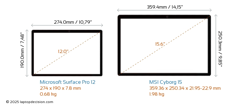HDMI Cyborg 15 verfügt über einen HDMI-Port (1x HDMI 2.0) zum Anschluss an externe Monitore. Surface Pro 12 hat keinen HDMI-Port.