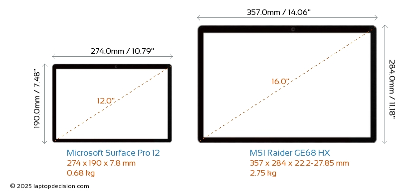 HDMI Raider GE68 HX verfügt über einen HDMI-Port (1x HDMI 2.1) zum Anschluss an externe Monitore. Surface Pro 12 hat keinen HDMI-Port.