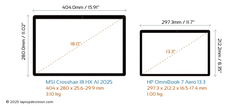HDMIBeide, Crosshair 18 HX AI 2025 und OmniBook 7 Aero 13.3 , verfügen über einen HDMI-Port (1x HDMI 2.1) zum Anschluss an externe Monitore.