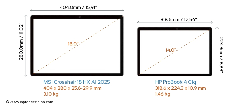 HDMIBeide, Crosshair 18 HX AI 2025 und ProBook 4 G1q, verfügen über einen HDMI-Port (1x HDMI 2.1) zum Anschluss an externe Monitore.