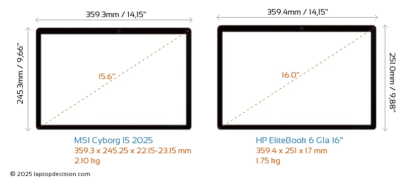 HDMIBeide, Cyborg 15 2025 und EliteBook 6 G1a 16", verfügen über einen HDMI-Port (1x HDMI 2.1) zum Anschluss an externe Monitore.