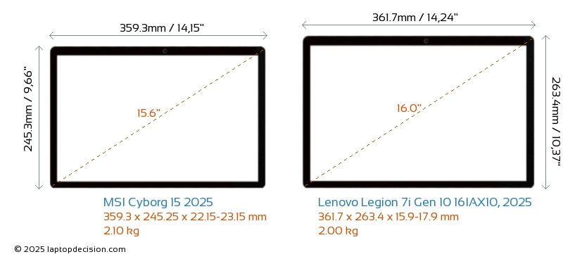 HDMIBeide, Cyborg 15 2025 und Legion 7i Gen 10 16IAX10, 2025, verfügen über einen HDMI-Port (1x HDMI 2.1) zum Anschluss an externe Monitore.