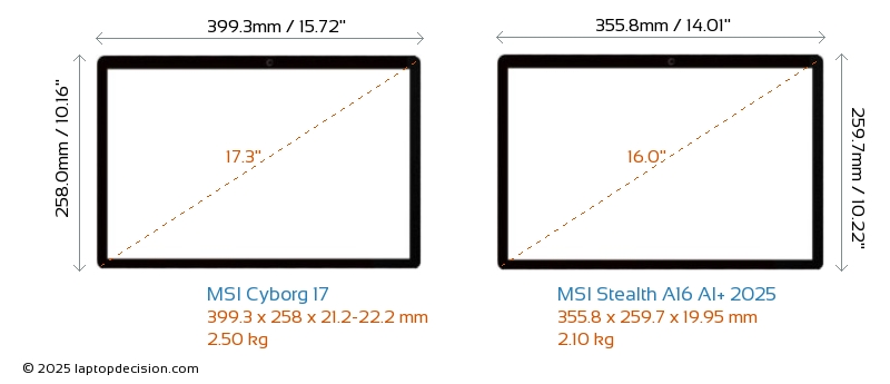 HDMIBeide, Cyborg 17 und Stealth A16 AI+ 2025, verfügen über einen HDMI-Port (1x HDMI 2.1) zum Anschluss an externe Monitore.