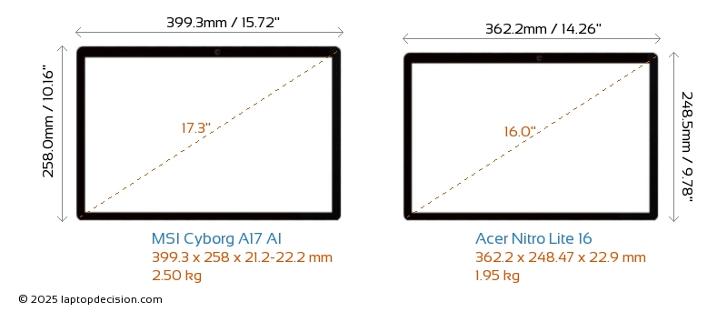 HDMIBeide, Cyborg A17 AI und Nitro Lite 16, verfügen über einen HDMI-Port (1x HDMI 2.1) zum Anschluss an externe Monitore.