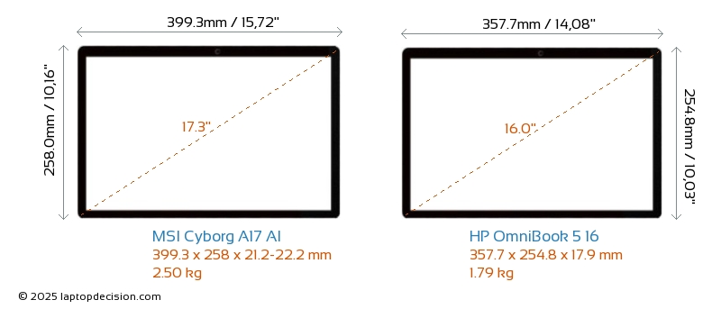 HDMIBeide, Cyborg A17 AI und OmniBook 5 16 , verfügen über einen HDMI-Port (1x HDMI 2.1) zum Anschluss an externe Monitore.