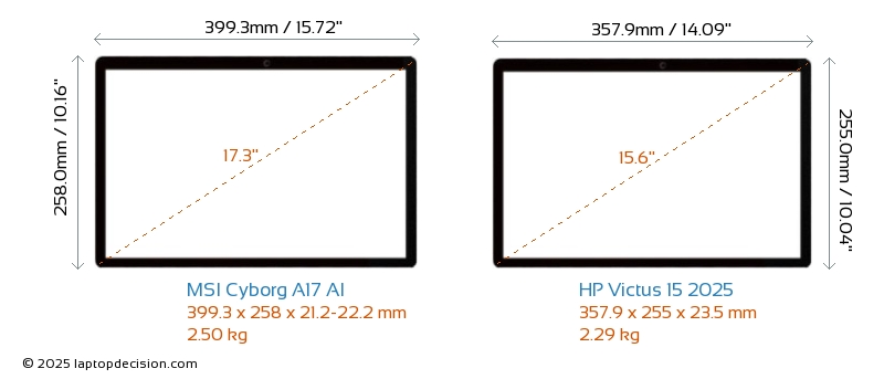 HDMIBeide, Cyborg A17 AI und Victus 15 2025, verfügen über einen HDMI-Port (1x HDMI 2.1) zum Anschluss an externe Monitore.